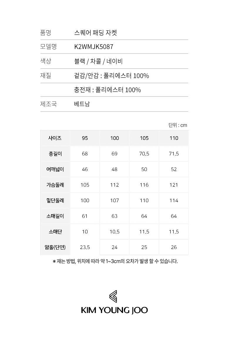| 제품소재 | 겉/안감 : 폴리에스터 100%, 충전재 : 폴리에스터 100% |